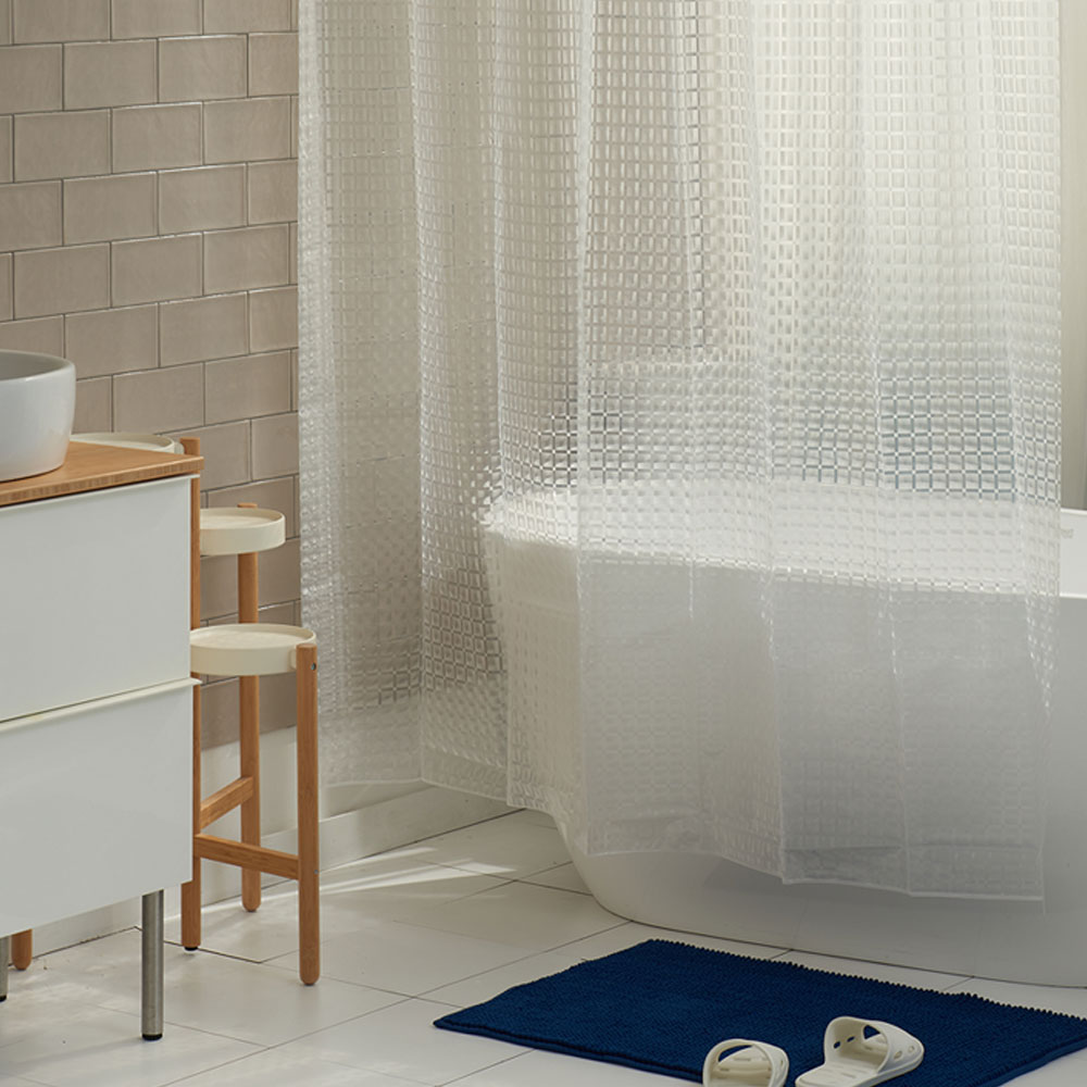 멀리 갈 필요 없어.다이소에 가면 샤워커튼은 많아.가격대는 5,000원에서 1,000원.사실 자주 바꿔준다고 생각하면 1,000원짜리 제품도 나쁘지 않지만…그래도 두꺼운 편이 사용감이 좋다.